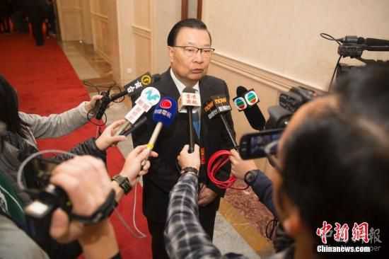 3月7日,十三屆全國(guó)人大二次會(huì)議香港特別行政區(qū)代表團(tuán)舉行全體會(huì)議,審議政府工作報(bào)告,審查政府計(jì)劃報(bào)告和預(yù)算報(bào)告,并向媒體開(kāi)放。圖為第十三屆全國(guó)人大常委會(huì)委員、香港民建聯(lián)會(huì)務(wù)顧問(wèn)譚耀宗接受媒體采訪。中新社記者 王駿 攝