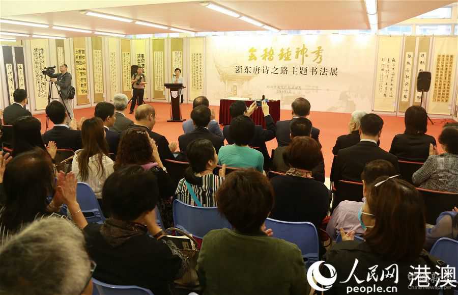 作為“香港·紹興周”的首場活動,“文化紹興”書法展以“浙東唐詩之路”為主題,共展出紹興100名書法家作品。