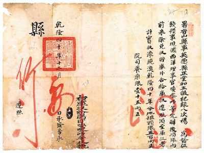 圖為“漢文文書”之“署香山知縣楊椿發(fā)給完納地租銀庫收單”。(資料圖片)