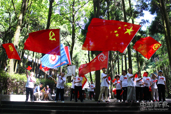 在《憶秦娥·婁山關(guān)》石壁下方,志愿者們激情高昂的朗誦了這耳熟能詳?shù)脑娖T诰哂?ldquo;一夫當(dāng)關(guān)萬夫莫開”的婁山關(guān)關(guān)口處,再次感受了當(dāng)年紅軍們鏖戰(zhàn)婁山關(guān)的場(chǎng)景。在婁山關(guān)革命烈士紀(jì)念碑前,黨員志愿者面對(duì)黨旗重溫了入黨誓詞,青年志愿者們也再次進(jìn)行莊嚴(yán)宣誓。