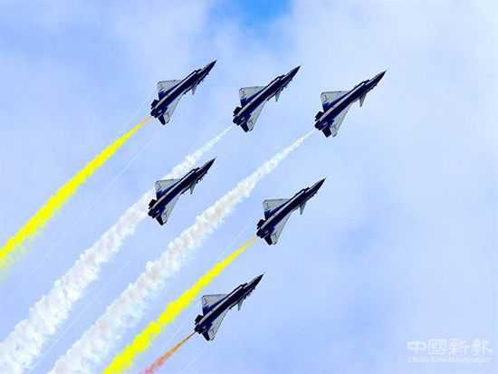 被譽為“藍天儀仗隊”的八一飛行表演隊為參訪代表展示了單機蛇形扭轉(zhuǎn)、雙機對頭交叉、五機水平向上開花等一系列高難度動作。速度、力量和技巧的完美結(jié)合,讓參訪代表驚嘆不已,頻頻鼓掌致敬,掌聲、快門聲、歡呼聲響成一片。