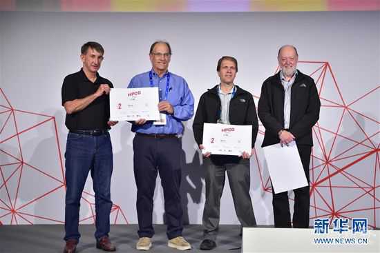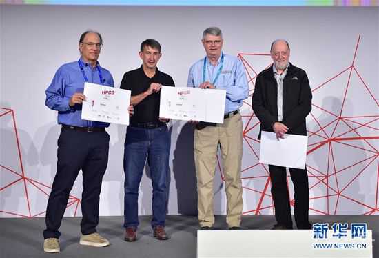 6月17日,在德國法蘭克福,美國能源部下屬勞倫斯利弗莫爾國家實(shí)驗(yàn)室開發(fā)的“山脊”團(tuán)隊(duì)代表上臺領(lǐng)取證書。 新一期全球超級計(jì)算機(jī)500強(qiáng)榜單17日面世,中國超算上榜數(shù)量蟬聯(lián)第一,美國超算“頂點(diǎn)”仍是運(yùn)算速度冠軍。新榜單還有一大看點(diǎn)是史上首次所有上榜超算的速度都突破了每秒千萬億次。 新華社記者 逯陽 攝