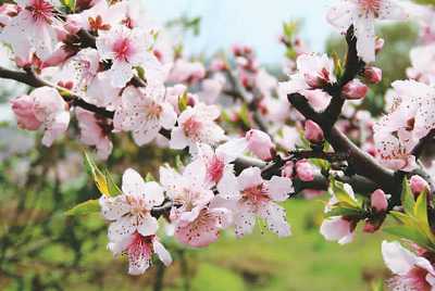 齊身高的桃枝上,繁如群星般地開滿了花蕾,千姿百態(tài),惹人喜愛。有的含苞待放,半露半藏,羞羞答答;有的迎風初綻,紅艷欲滴,亭亭玉立;有的天真爛漫,俏皮可愛;有的花枝招展,神采飛揚。幾只粉蝶翩翩起舞,數只蜜蜂飛來飛去,和我們共享這大自然賜予的美麗景色。