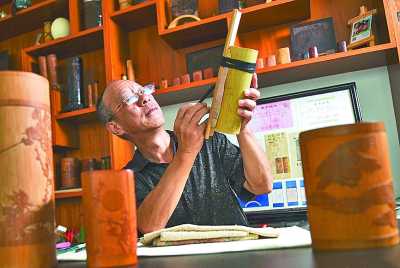 南昌竹雕歷史悠久,明清時(shí)期趨于成熟并獨(dú)立發(fā)展,為江西省南昌市非物質(zhì)文化遺產(chǎn),是南昌古老的文化品牌和民間藝術(shù)瑰寶。圖為竹雕藝人胡清在精心創(chuàng)作。李剛攝/光明圖片