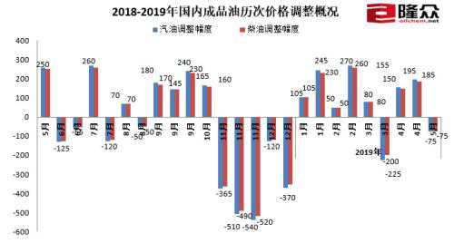 2018-2019年國內(nèi)成品油歷次價格調(diào)整概況。來源:隆眾資訊