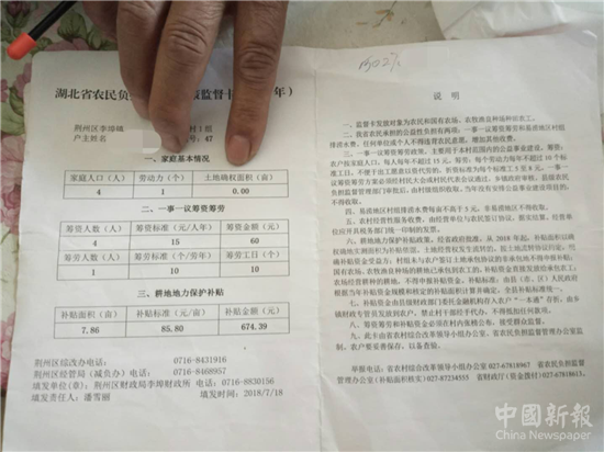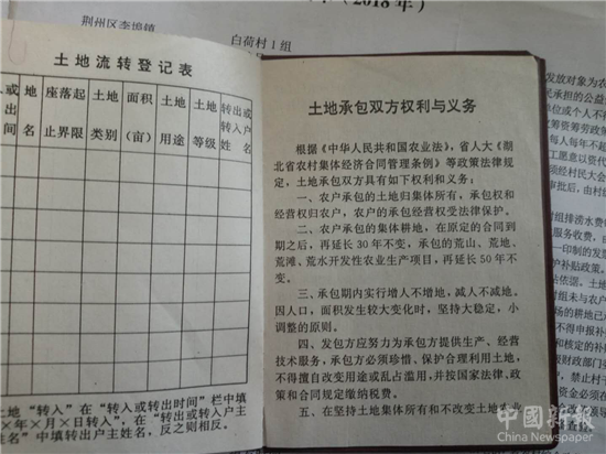 中國新報(bào)訊(記者 孫運(yùn)曉)近日,湖北荊州區(qū)李埠鎮(zhèn)白荷村村民向記者反映,拆遷工作征收村民土地,卻得不到補(bǔ)償,而白荷村2013年村委開會(huì)決定,拆遷補(bǔ)償只針對(duì)1983年第一輪承包土地村民,那么1996年第二輪承包土地村民,不享受拆遷補(bǔ)償,這是什么原因?以村民王先生為例,蓋有荊州區(qū)李埠鎮(zhèn)財(cái)政管理所公章的“湖北省農(nóng)民負(fù)擔(dān)及補(bǔ)償政策監(jiān)督卡”上面標(biāo)有農(nóng)民二輪延包或農(nóng)工責(zé)任田面積6.4畝,而2018年度“監(jiān)督卡”卻顯示土地確權(quán)面積0畝,而這些承包土地村民都有蓋有政府印證的土地承包經(jīng)營權(quán)證,土地承包經(jīng)營權(quán)為何就這樣消失了?