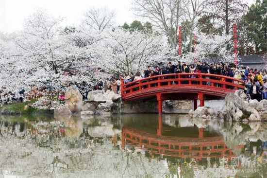 近日,湖北武漢東湖櫻花櫻花已經(jīng)進(jìn)入盛花期,園內(nèi)游人如織。