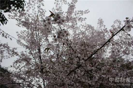 或許是櫻花品種不同,這里的櫻花是粉白色的,而不是像魯迅先生所寫的“緋紅”,看來(lái)陸游所說(shuō)的“絕知此事要躬行”很有道理。龍?jiān)春臋鸦ǘ涫俏迤字型阜鄣膯螌踊ò?,嬌嫩的花蕊帶著幾分柔軟的黃,散發(fā)出絲絲縷縷的花香,浸染在雨后的空氣里。櫻花或盛開,或含羞待放,或緊密相挨,或傲然獨(dú)立。一朵一朵、一簇一簇綻滿枝頭。陶醉其中,顧盼留戀,起伏的山峰,櫻花深情款款。