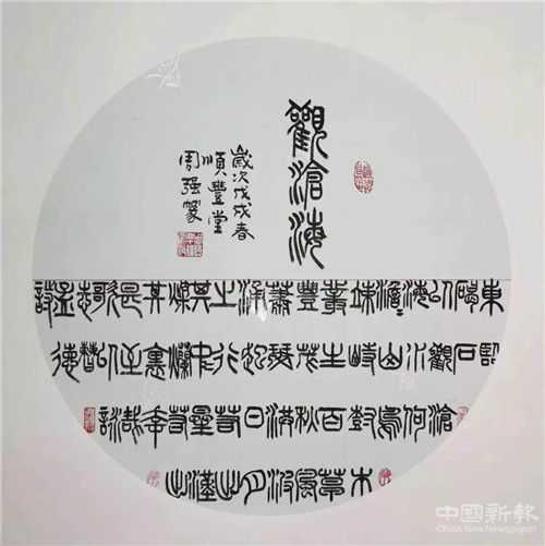周強(qiáng)自幼習(xí)書以篆書為主,諸體兼修。作品小篆用筆遒婉流暢,體勢頎長,結(jié)字工整規(guī)范,大篆具有遒勁凝重的風(fēng)格。