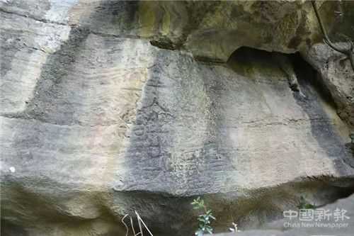 在古鹽道旁有一懸?guī)r,絕壁上有水涌出,為保證人畜飲水和灌溉良田,當(dāng)?shù)乩畈?、李昌漢兄弟二人,硬是在峭壁上打出一條溝渠,并在取水處右側(cè)石壁留有摩崖石刻。