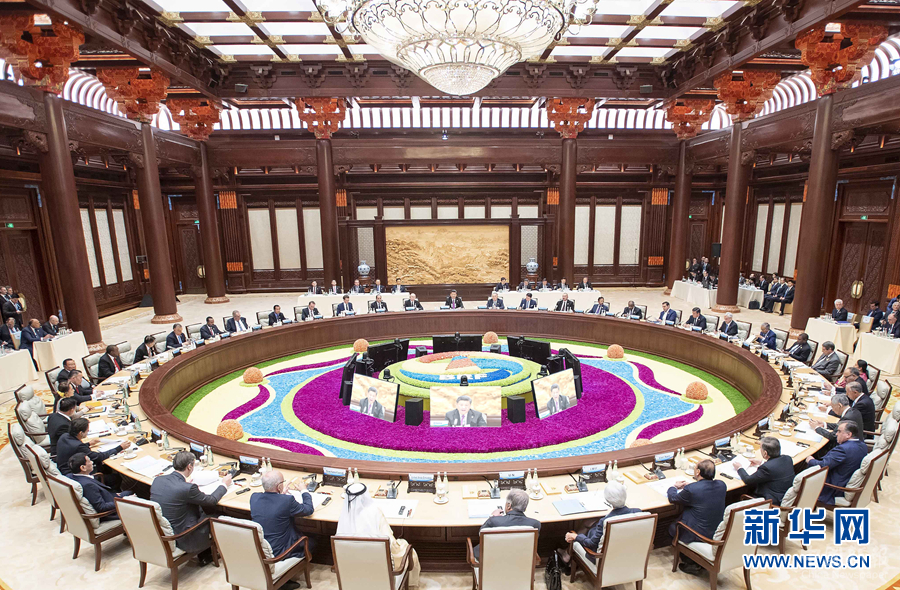 4月27日,第二屆“一帶一路”國際合作高峰論壇在北京雁棲湖國際會議中心舉行圓桌峰會,國家主席習(xí)近平主持會議并致開幕辭。 新華社記者李濤 攝