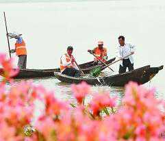 擔(dān)當(dāng)是中國共產(chǎn)黨人的政治本色。浙江湖州市以美麗河湖串聯(lián)美麗鄉(xiāng)村,高品質(zhì)打造了100條美麗河湖。圖為黨員志愿者從身邊事做起,在湖州德清縣新市鎮(zhèn)一條小河里打撈河道漂浮物。新華社發(fā)