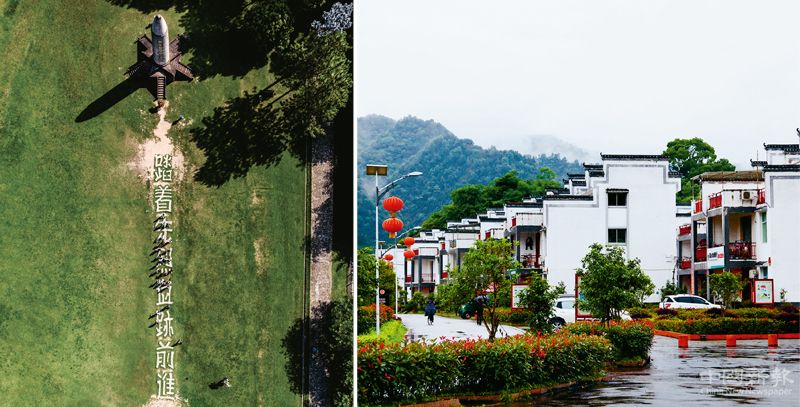 2018年7月29日,瑞金市率先在贛南脫貧摘帽,“共和國搖籃”在全面建成小康社會道路上邁出關(guān)鍵一步。左圖為2018年7月21日拍攝的江西瑞金市紅軍烈士紀(jì)念塔的鳥瞰圖(黃龍/攝)。右圖為2019年5月6日拍攝的華屋村新貌(新華社記者 蘭紅光/攝)。華屋村位于江西瑞金市葉坪鄉(xiāng),是遠(yuǎn)近聞名的“紅軍村”。