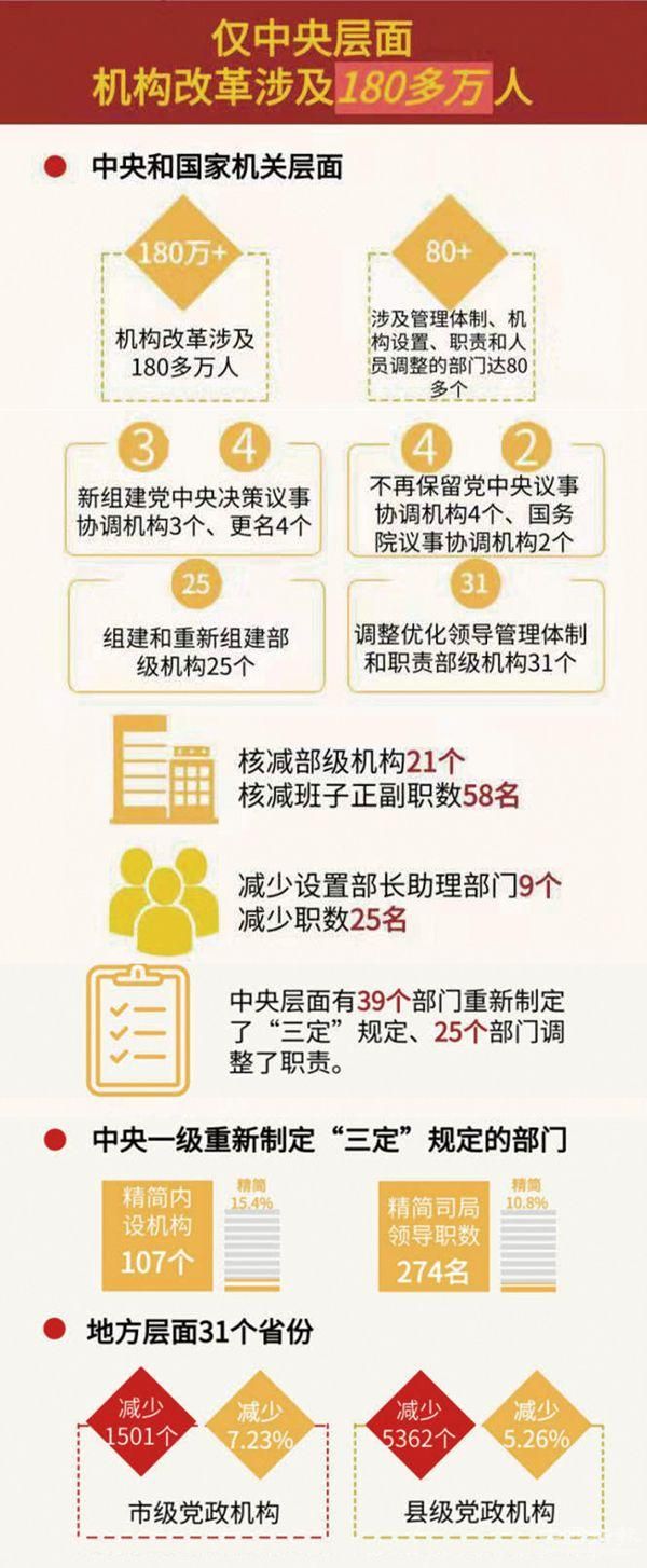 一年多來,在以習(xí)近平同志為核心的黨中央堅強領(lǐng)導(dǎo)下,從中央到地方,上下同心,整體性推進各級各類機構(gòu)改革,取得重大成效。 圖表來源:新華社