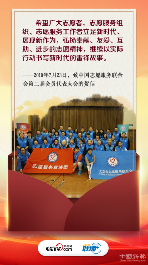 一直以來,習(xí)近平十分關(guān)心志愿服務(wù)工作??隙?ldquo;本禹志愿服務(wù)隊”在服務(wù)他人、奉獻(xiàn)社會中取得的成績和進(jìn)步;勉勵“郭明義愛心團(tuán)隊”以實際行動書寫新時代的雷鋒故事;在天津市和平區(qū)新興街朝陽里社區(qū),稱贊志愿者們是為社會作出貢獻(xiàn)的前行者、引領(lǐng)者……