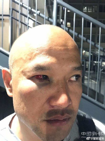 7月30日,香港葵涌警署外,光頭警長劉Sir被暴徒圍攻眼睛受傷充血。