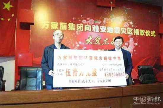 2013年4月24日萬(wàn)家麗向四川雅安地震災(zāi)區(qū)捐款50萬(wàn)元;