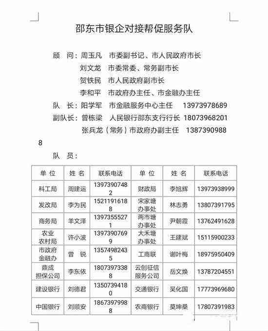 會(huì)上組建了邵東市銀企對(duì)接幫促服務(wù)隊(duì),副市長(zhǎng)賀鐵民要求服務(wù)隊(duì)真正發(fā)揮作用,讓企業(yè)能順暢找到銀行,讓銀行能及時(shí)了解企業(yè)需求,以及時(shí)促成銀企有效對(duì)接,及時(shí)緩解企業(yè)融資難、融資貴的困境。