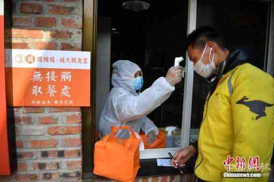 資料圖:餐廳員工對(duì)取餐外賣(mài)小哥進(jìn)行測(cè)溫登記,并用酒精進(jìn)行手部消毒。中新社記者 劉冉陽(yáng) 攝
