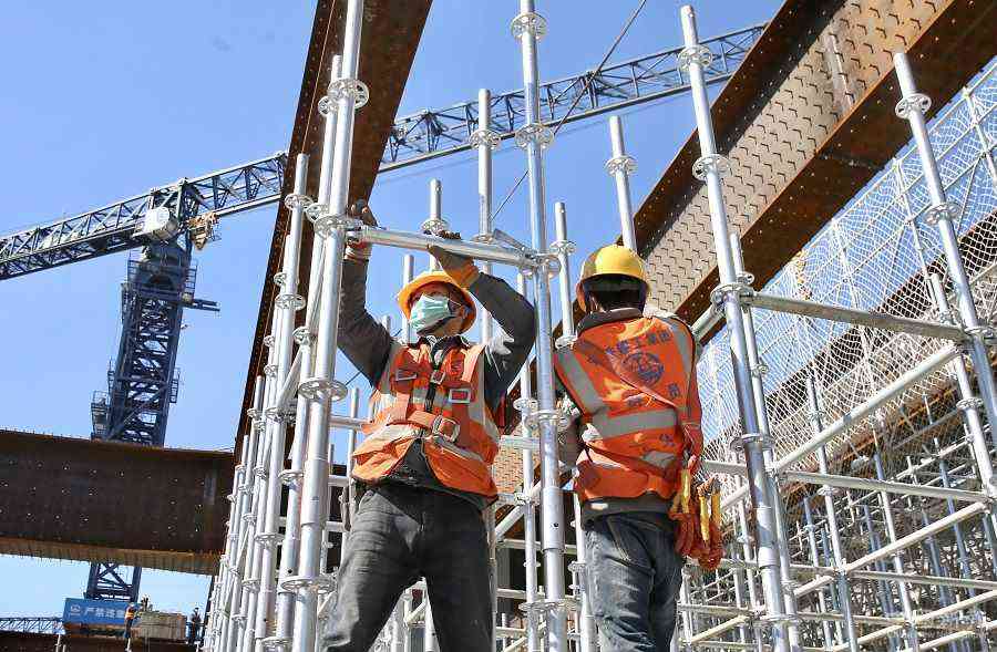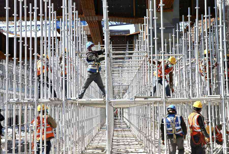 工人在北京豐臺(tái)站改建工程工地施工。(中國(guó)日?qǐng)?bào)記者 鄒紅 攝)