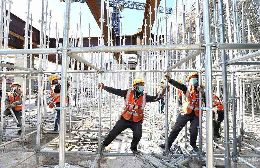 中國(guó)日?qǐng)?bào)3月13日電(記者 鄒紅)2020年3月13日,工人在北京豐臺(tái)站改建工程工地施工。北京豐臺(tái)站改建工程自復(fù)工以來安全有序推進(jìn),為完成全年工程建設(shè)目標(biāo)任務(wù)奠定基礎(chǔ)。 從中國(guó)鐵路北京局集團(tuán)有限公司獲悉,2月6日,140余名建設(shè)者率先進(jìn)入工地,3月13日,施工人員增加至1500余名。為減少人員聚集,傳統(tǒng)的流水作業(yè)改為多作業(yè)面施工,每個(gè)作業(yè)面不超50人,同時(shí)調(diào)整作業(yè)流程,提高大型機(jī)械使用率。