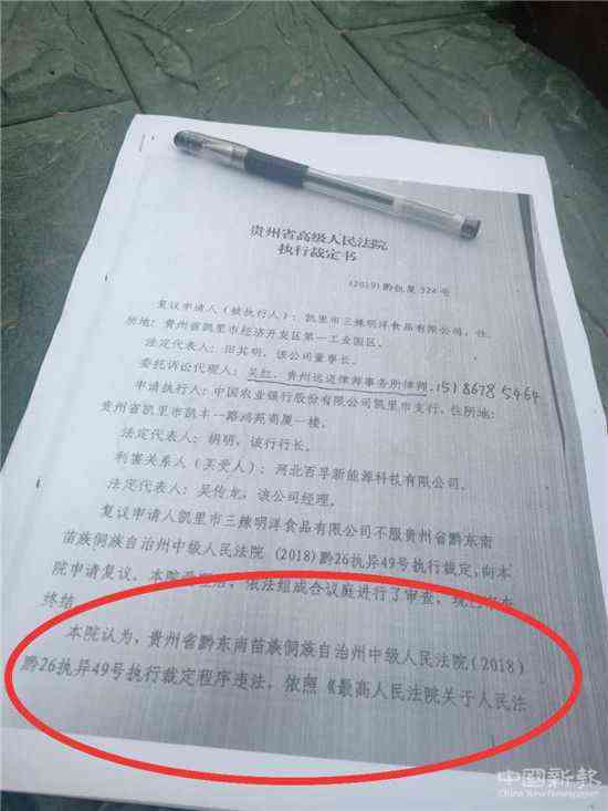 前不久,貴州省高院的執(zhí)行裁定書下發(fā),它認(rèn)定黔東南州中級(jí)法院駁回三辣明洋公司異議請(qǐng)求的執(zhí)行裁定書存在程序違法的情況,予以撤銷,責(zé)令黔東南州中級(jí)法院重新審查。