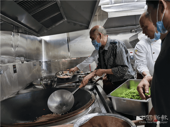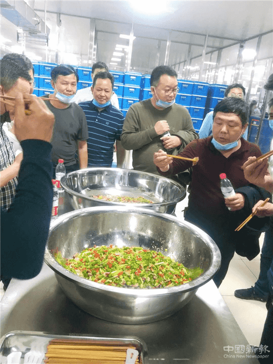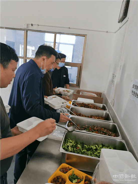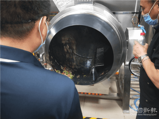 (品嘗智能中央廚房的飯菜,大家贊不絕口。攝影:梁洪英)