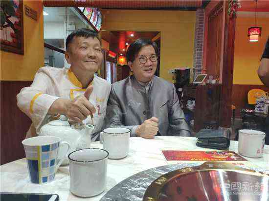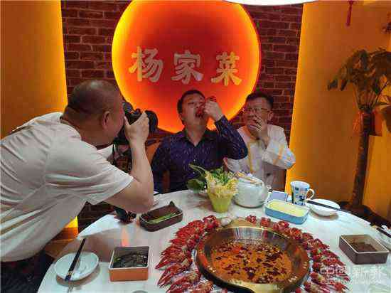 (圖為湖南餐飲文化代言人鄧杰(右一)對(duì)"龍蝦火鍋"豎起大拇指)