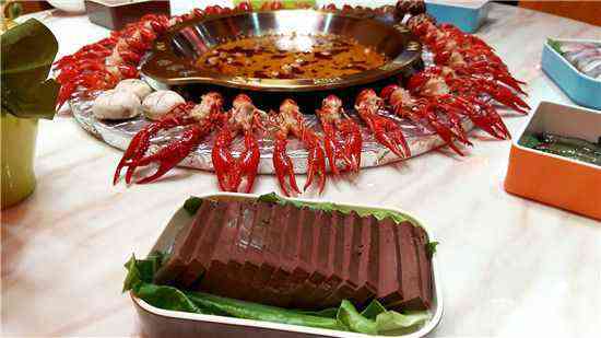 5月15日晚上6時(shí)許,記者有幸和朋友品嘗了“龍蝦火鍋”,銅鑄火鍋,四周擺了25只掐頭去尾的龍蝦,旁邊又?jǐn)[了冬瓜、土豆片、豬肝、鴨腸、魚(yú)片、泥鰍和鴨血等火鍋配菜,隨著服務(wù)員將鍋湯倒入,短短一二十秒,火鍋紅油鍋湯便開(kāi)始沸騰,隨后大家講龍蝦兩三寸大的龍蝦一只只丟人火鍋。