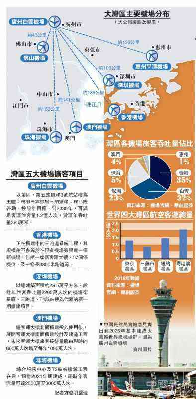 另有廣東省航空業(yè)界有關(guān)負(fù)責(zé)人對大公報表示,期待五大機(jī)場加強(qiáng)定期溝通機(jī)制,根據(jù)未來灣區(qū)發(fā)展階段開展更加深入與全面的合作。該負(fù)責(zé)人稱,近年大灣區(qū)機(jī)場群年客運量2億左右,預(yù)計2030年旅客吞吐量將近4億人次,貨郵吞吐量2000萬噸。