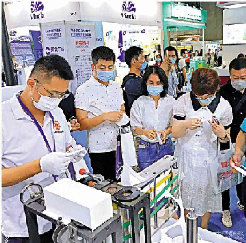 圖:廣州開(kāi)發(fā)區(qū)企業(yè)在展會(huì)上對(duì)接國(guó)內(nèi)外客商/大公報(bào)記者敖敏輝攝
