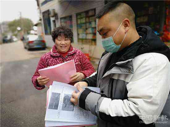 村(社區(qū))干部為居民發(fā)放防控宣傳資料
