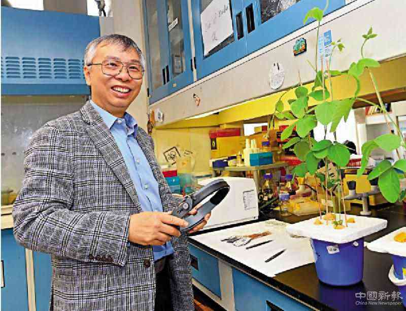 圖:大豆科研計(jì)劃負(fù)責(zé)人之一的林漢明教授在其實(shí)驗(yàn)室內(nèi)培植大豆植株\大公報(bào)記者攝