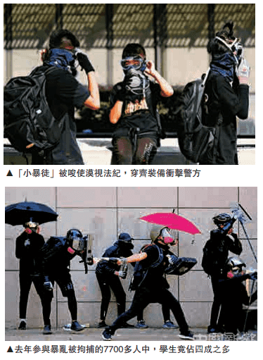 根據(jù)警方公布最新數(shù)字,參與暴亂被拘捕的7700多人中,學(xué)生占了四成,而18歲以下的被捕學(xué)生一直上升,去年暴亂初期只占整體的6%,今年一月升至26%。年輕人守法意識薄弱,與反對派長期鼓動“違法達(dá)義”有關(guān),他們胡說“入獄達(dá)義”、“留案底令人生變得更精彩”、“暴力有時或可解決問題”歪理,唆使年輕人漠視法紀(jì),沖擊警方。