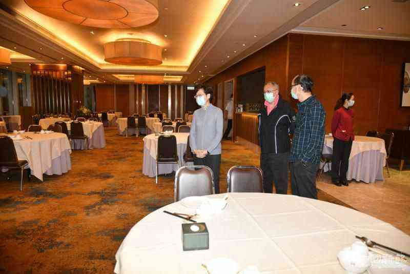 林鄭月娥昨日下午在行政會議成員張宇人陪同下到鲗魚涌一幢商廈,視察一間酒樓及一間食店因應(yīng)新規(guī)例落實多項防疫措施的情況。有負(fù)責(zé)人表示,已按法例規(guī)定落實多項減低病毒傳播風(fēng)險的措施,而且與其他很多食肆一樣,采取了提供外賣折扣、安排一些客人面向同一方向的座位等自發(fā)行動,配合防疫。酒樓及食店的顧客普遍認(rèn)同特區(qū)政府加強(qiáng)市民社交距離的目標(biāo),對各項衛(wèi)生安排不持異議。