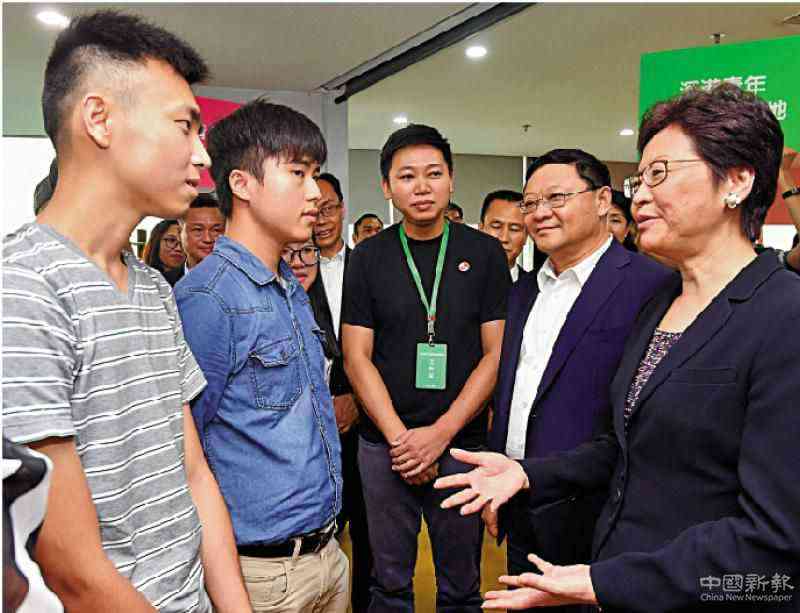 圖:林鄭月娥在二○一七年參觀深港青年創(chuàng)新創(chuàng)業(yè)基地及前海深港青年夢工場