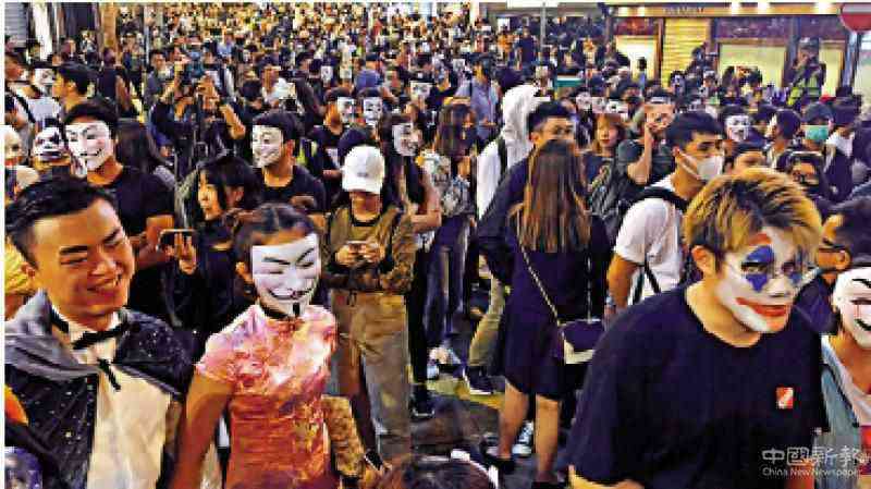 圖:被告去年萬圣節(jié)參與中環(huán)“面具夜”非法集結,最終被上訴庭改判監(jiān)三個月
