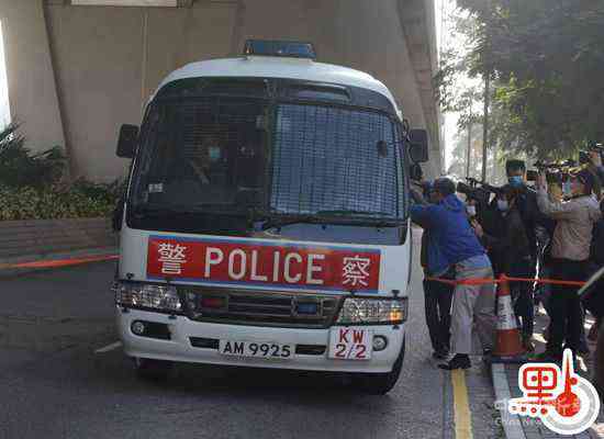 黎智英今早被押往西九龍法院提堂。(點(diǎn)新聞?dòng)浾邉P楊攝)