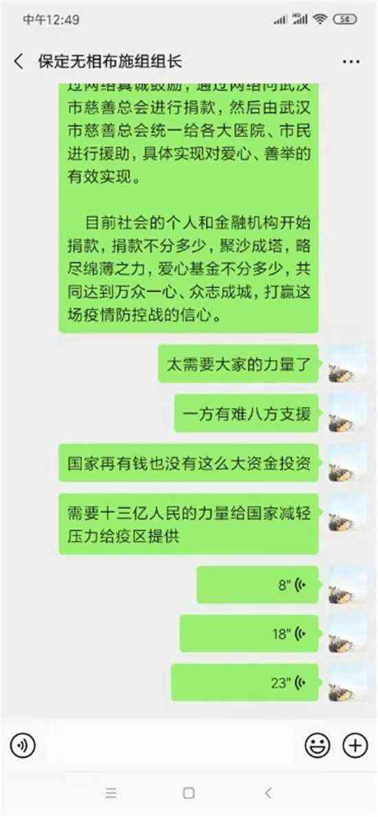 看到李娜所長的呼吁后,保定無相布施組、定州無相布施組等一些愛心人士紛紛加入了捐款獻(xiàn)愛心的隊伍。家住定州市的一位年逾八旬的老者從退休金中拿出一萬元進(jìn)行捐助。值得一提的是,這位老者幾十年如一日,每月都要拿出五百元做好事。