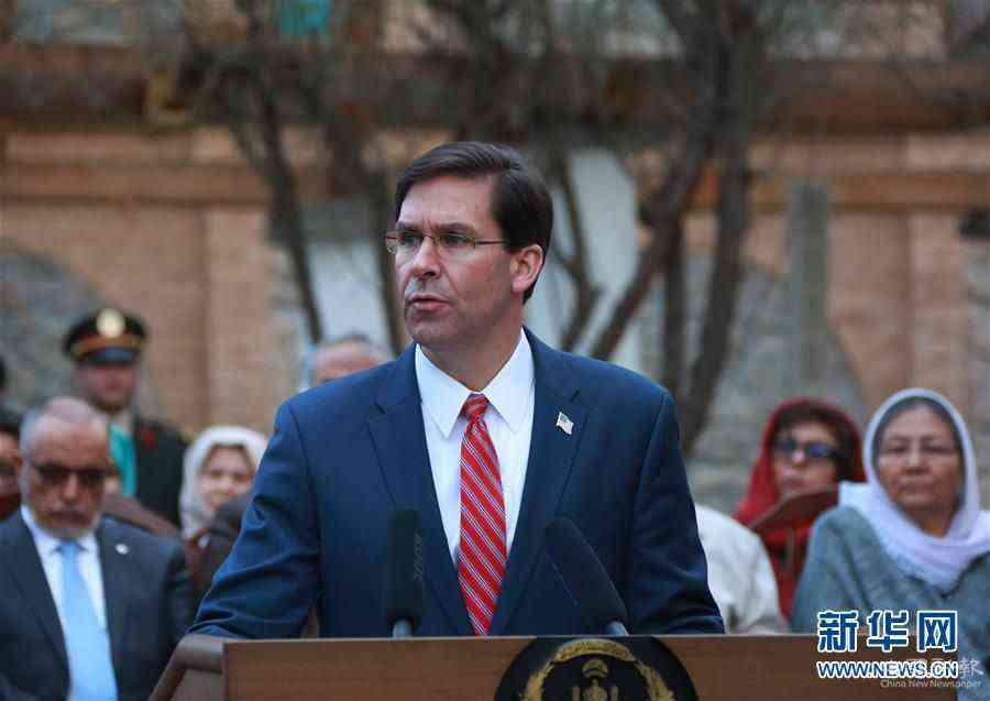 2月29日,在阿富汗首都喀布爾,美國(guó)國(guó)防部長(zhǎng)馬克·埃斯珀在新聞發(fā)布會(huì)上講話。 新華社發(fā)(拉赫馬圖拉·阿里扎達(dá) 攝)