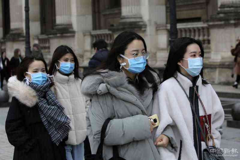 圖:遊客2月28日戴著口罩走在法國巴黎街頭\美聯(lián)社