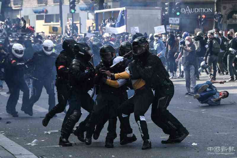 圖:法國防暴警察13日拘捕示威者\法新社