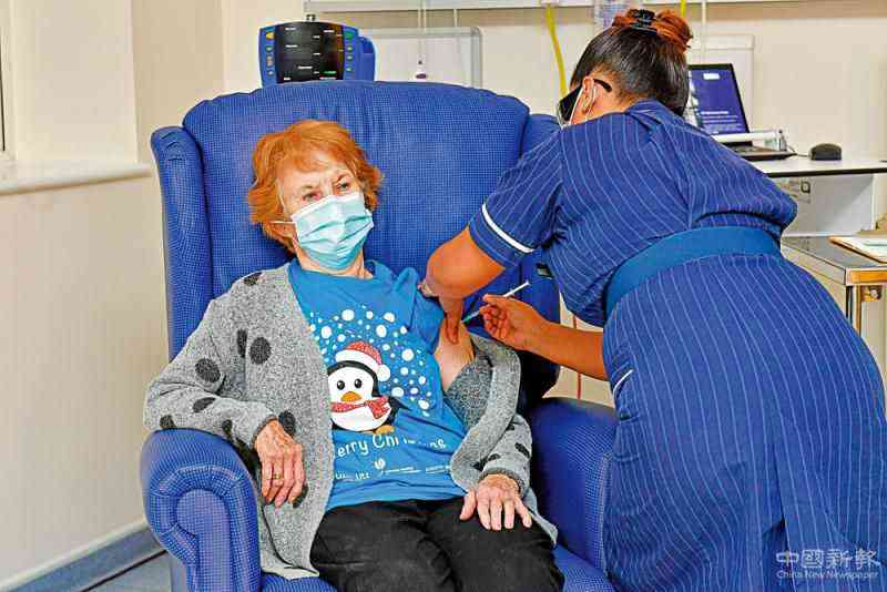 英國啟動疫苗計(jì)劃 90歲老嫗成首位接受注射者