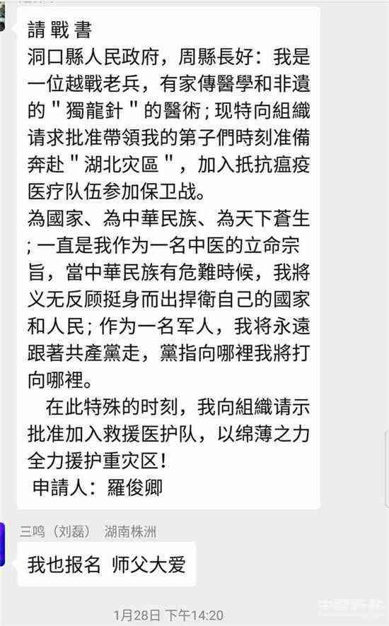 遠在廣東的非物質(zhì)文化遺產(chǎn)獨龍針法傳承人羅俊卿教授也心急如焚,向政府請愿,表示作為一名曾經(jīng)的軍人,退伍不褪色,哪里需要就準(zhǔn)備奔赴哪里,為國家為人民做出自己的貢獻。