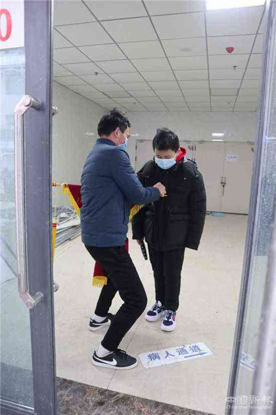 上午9點,陳某某出現(xiàn)在了發(fā)熱病區(qū)的大門內(nèi),陳父見狀立即走上去,然后單膝下跪,為兒子扣衣服……在場的媒體記者用鏡頭記錄了這濃濃的親情。