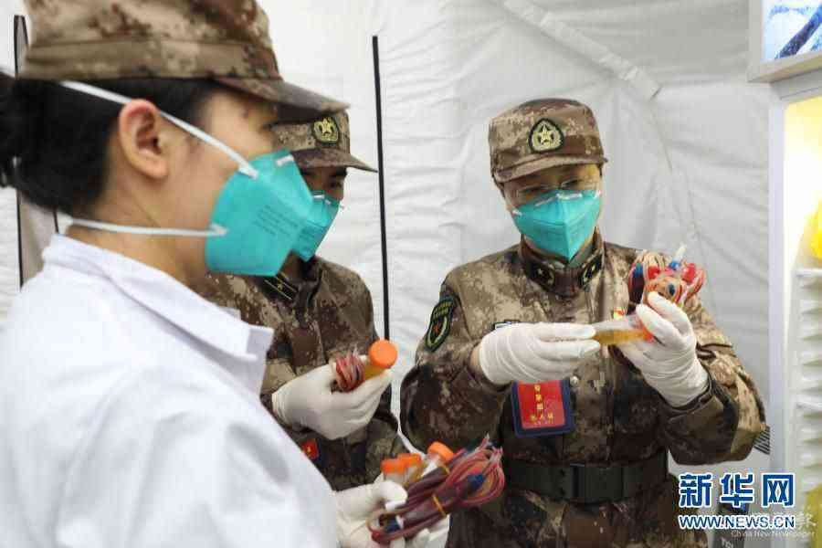 3月26日,中國(guó)工程院院士陳薇(右)在搭建的負(fù)壓帳篷實(shí)驗(yàn)室檢查血清分離。新華社發(fā)(張振威 攝)