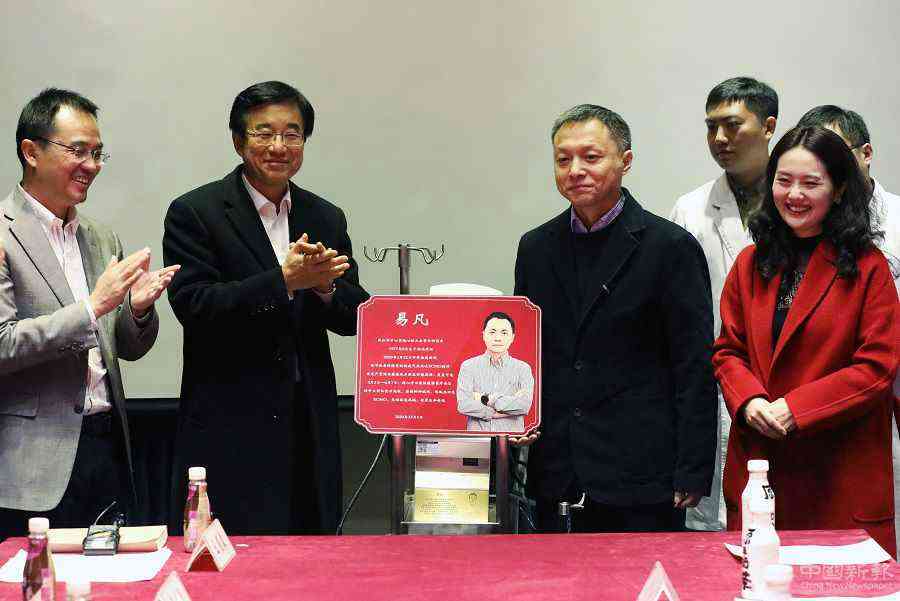 12月6日,王辰院士(左二)、中日友好醫(yī)院呼吸與危重癥學(xué)科主任詹慶元(左一)和易凡夫婦共同為“易凡號”ECMO揭牌。 中國日報記者 朱興鑫 攝