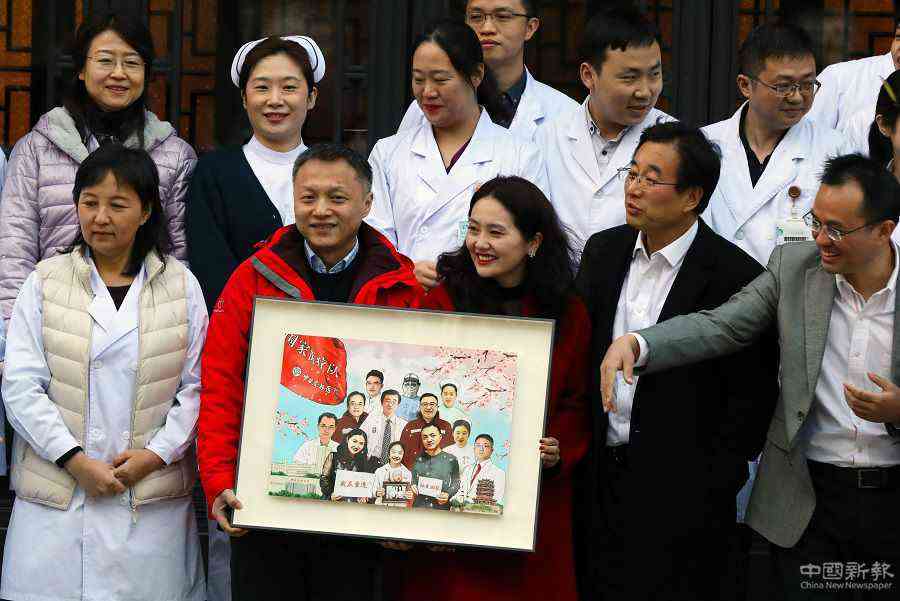 12月6日,在北京中日友好醫(yī)院,易凡夫婦與國家援鄂抗疫醫(yī)療隊代表合影留念。 中國日報記者 朱興鑫 攝