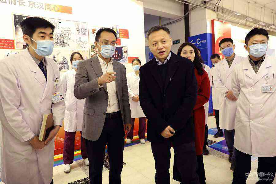 12月6日,武漢醫(yī)生易凡(中)與國家援鄂抗疫醫(yī)療隊代表共同參觀中日友好醫(yī)院抗擊新冠肺炎疫情工作展覽。 中國日報記者 朱興鑫 攝