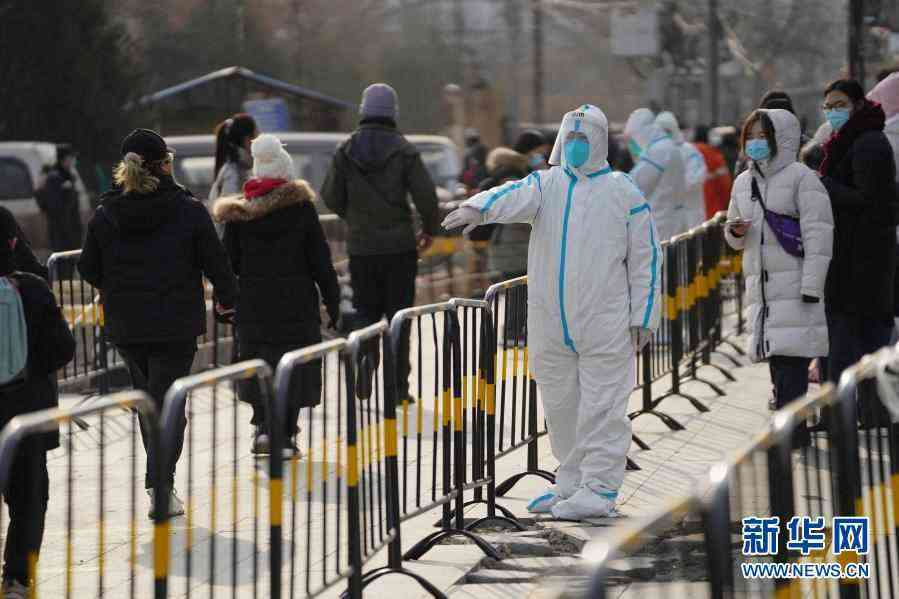 12月26日,在北京市朝陽(yáng)區(qū)望京街道一處核酸采樣點(diǎn),工作人員在引導(dǎo)相關(guān)人員排隊(duì)進(jìn)行核酸采樣。新華社記者 鞠煥宗 攝